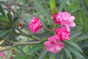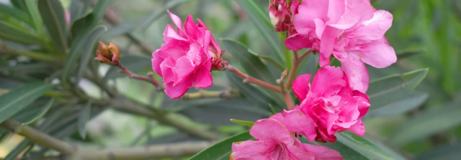 ต้นยี่โถ หรือ Nerium oleander เป็นไม้พุ่มหรือไม้ต้นขนาดกลาง มีดอกสีขาว ชมพู หรือแดง ลำต้นแข็งแรง ทนแล้งได้ดี